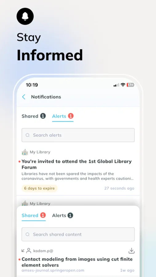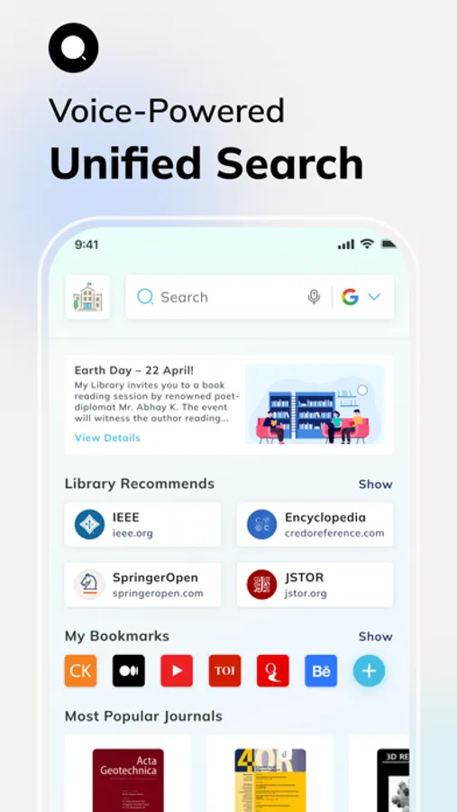Voice-command enabled universal search will help you to trigger your query easily inside any of your library supported search engines. MyLOFT also provides in-app browsing experience with the ability to save your favorite links as bookmarks to access them easily and regularly. So, enjoy your single app reading experience.