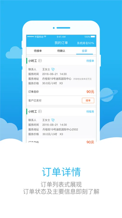 【在线接单】具备手机接单、处理订单功能,方便快捷一键完成