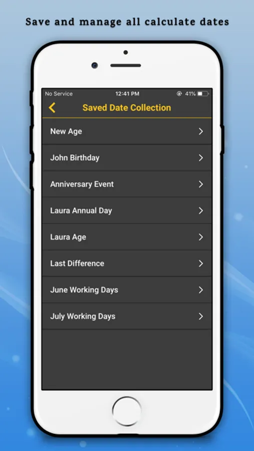 This app also allows you to save date in app and get list of all saved date from saved date collection.