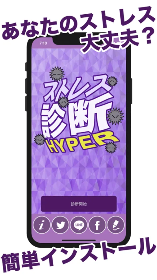 +ストレス診断は気軽に楽しめる面白ネタアプリです。ちょっとした暇つぶし用としてお楽しみください。