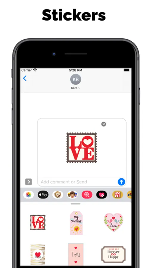 • Place stickers on top of message bubbles, other stickers, and photos;