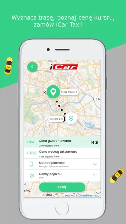 Bezpłatna aplikacja służąca do zamówienia taksówki w korporacji Icar Taxi 12 653 5555 w Krakowie. Aplikacja pozwoli na szybkie i wygodne zamówienie taksówki, oszacuje koszt przejazdu i czas oczekiwania, a także powiadomi, gdy taksówka dotrze pod adres zamówienia.