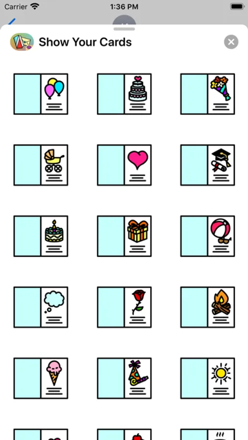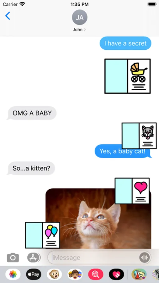 Each sticker begins as an envelope that opens to reveal a card. Also, because the cards come without words, you can send the sticker along with a personal message in any language.