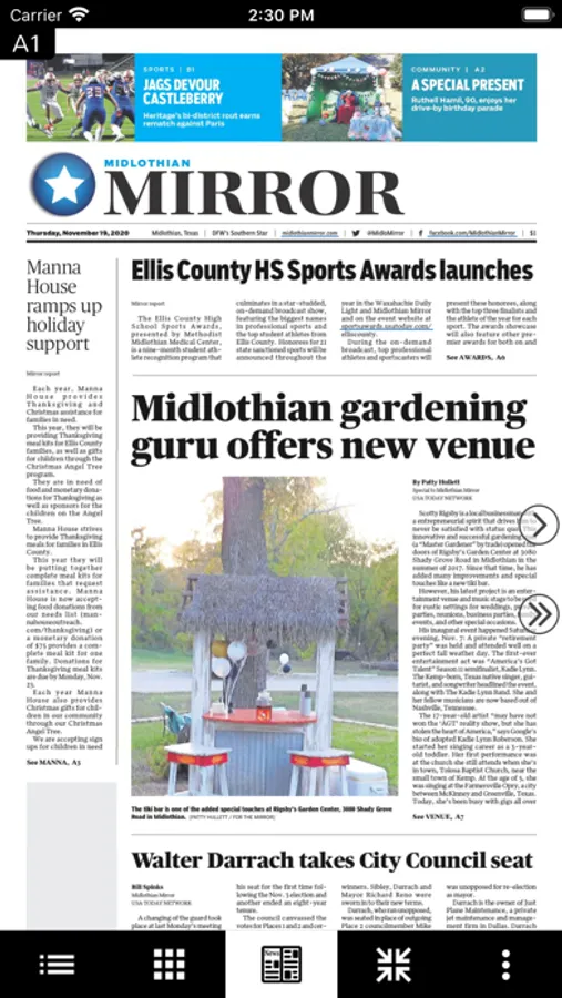 The Midlothian Mirror eEdition is an exact digital replica of the printed newspaper. Readers of the paper can flip through the pages, read stories, photos, and view ads just as they appeared in print.