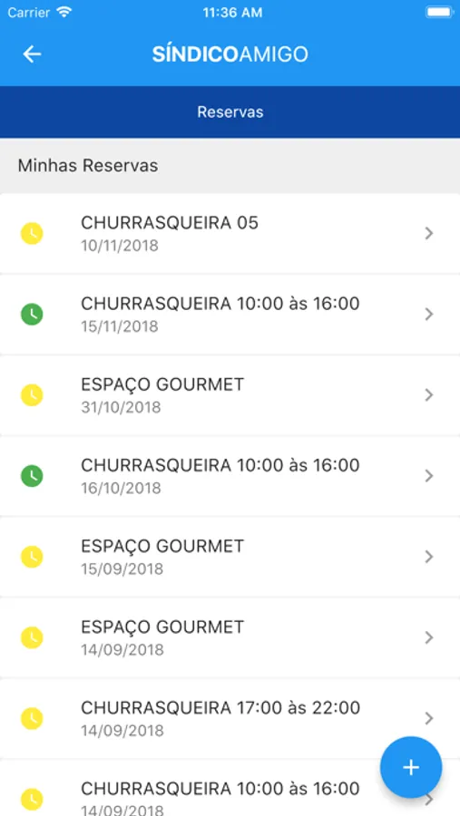 Este item, um dos mais utilizados no sistema, tem como funcionalidade principal: informar o usuário sobre dias e horários disponíveis para reservas, últimos agendamentos realizados e efetuar novas reservas.