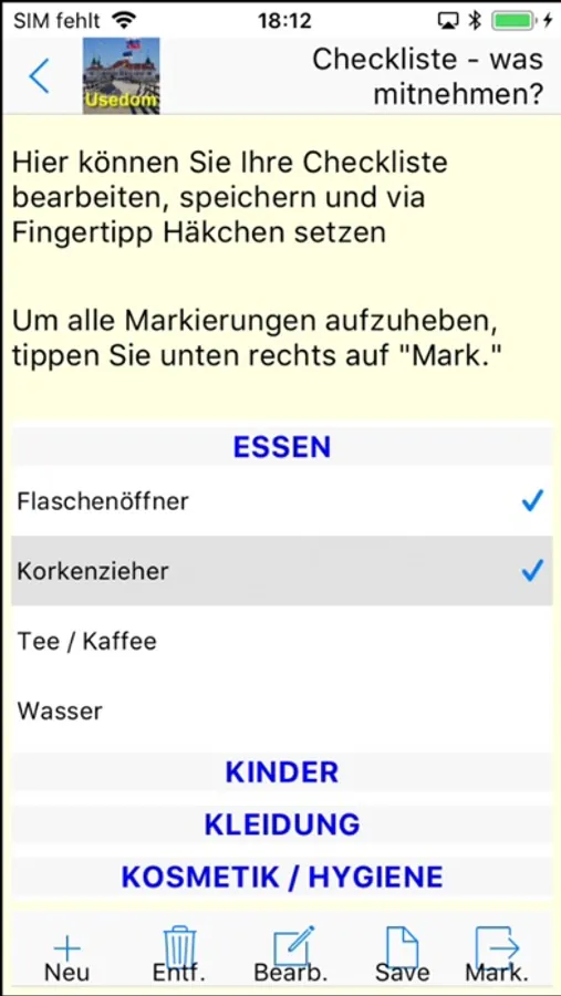 Die Usedom-App und enthält u.a. Reise-Checklisten für Ihre Reiseapotheke und Ihr Urlaubsgepäck, welche Sie auch selber verfeinern und im nächsten Urlaub wieder benutzen können. Außerdem bietet sie eine Reistagebuch und Wetterstatistiken mit schönen Diagrammen z.B. zum Klimavergleich zweier Urlaubsort. Weiterhin ist eine Sammlung von relevanten Webseiten für die Region vorhanden und gibt Ihnen die Möglichkeit, alle Informationen, die für Ihren Aufenthalt auf Usedom oder für Sie als Fan von Usedom interessant sind, möglichst bequem im Internet abzurufen: