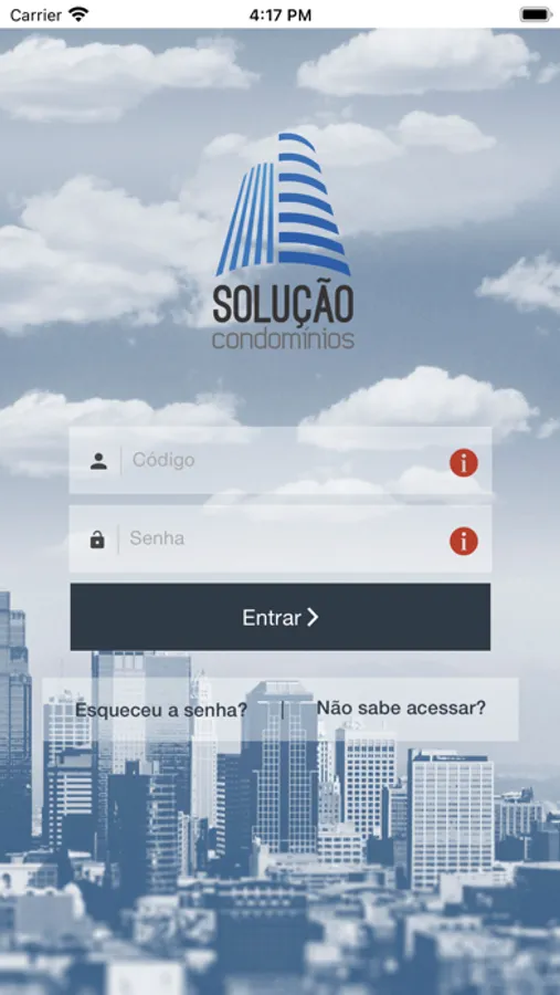 IMPORTANTE: O aplicativo é de uso exclusivo de condôminos da Solução Condomínios pois para acesso ao mesmo é necessário possuir código e senha. Se você ainda não é cliente Solução e está interessado em ter o APP e os serviços no seu Condomínio, entre em contato conosco e solicite uma proposta!