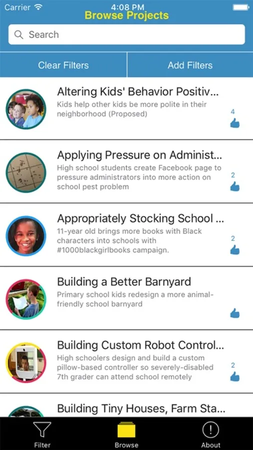 The projects in the database are intended to stimulate students’ and teachers’ thinking about what today’s students can accomplish in the world.