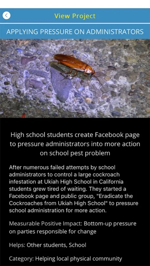 The Better Their World Student Project Database is a curated, freely-available listing of completed and potential real-world-projects with MEASURABLE POSITIVE IMPACT on the world.