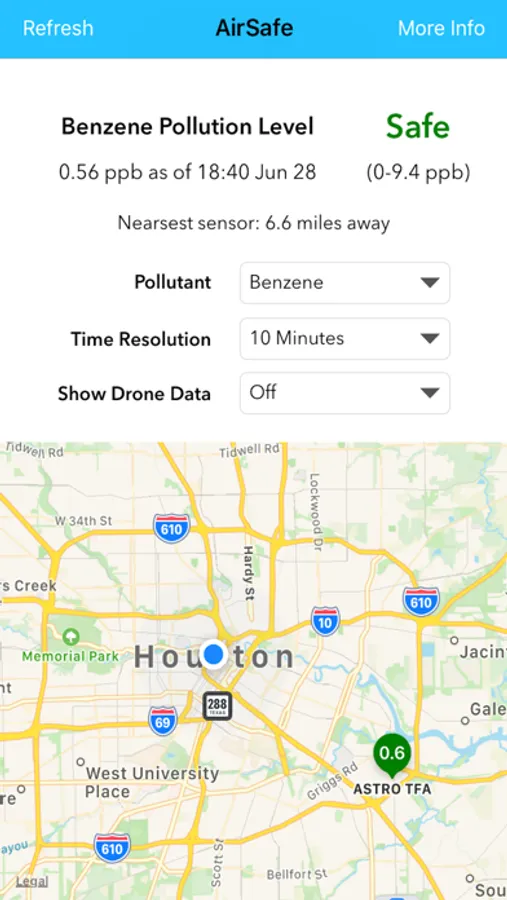 AirSafe is a Houston-based project that provides both live and historical readings of pollutant levels in the atmosphere.