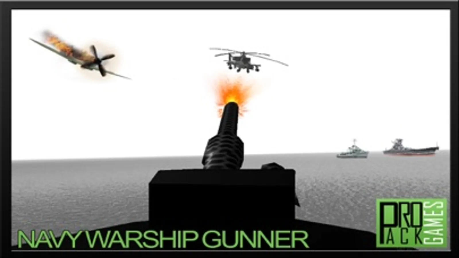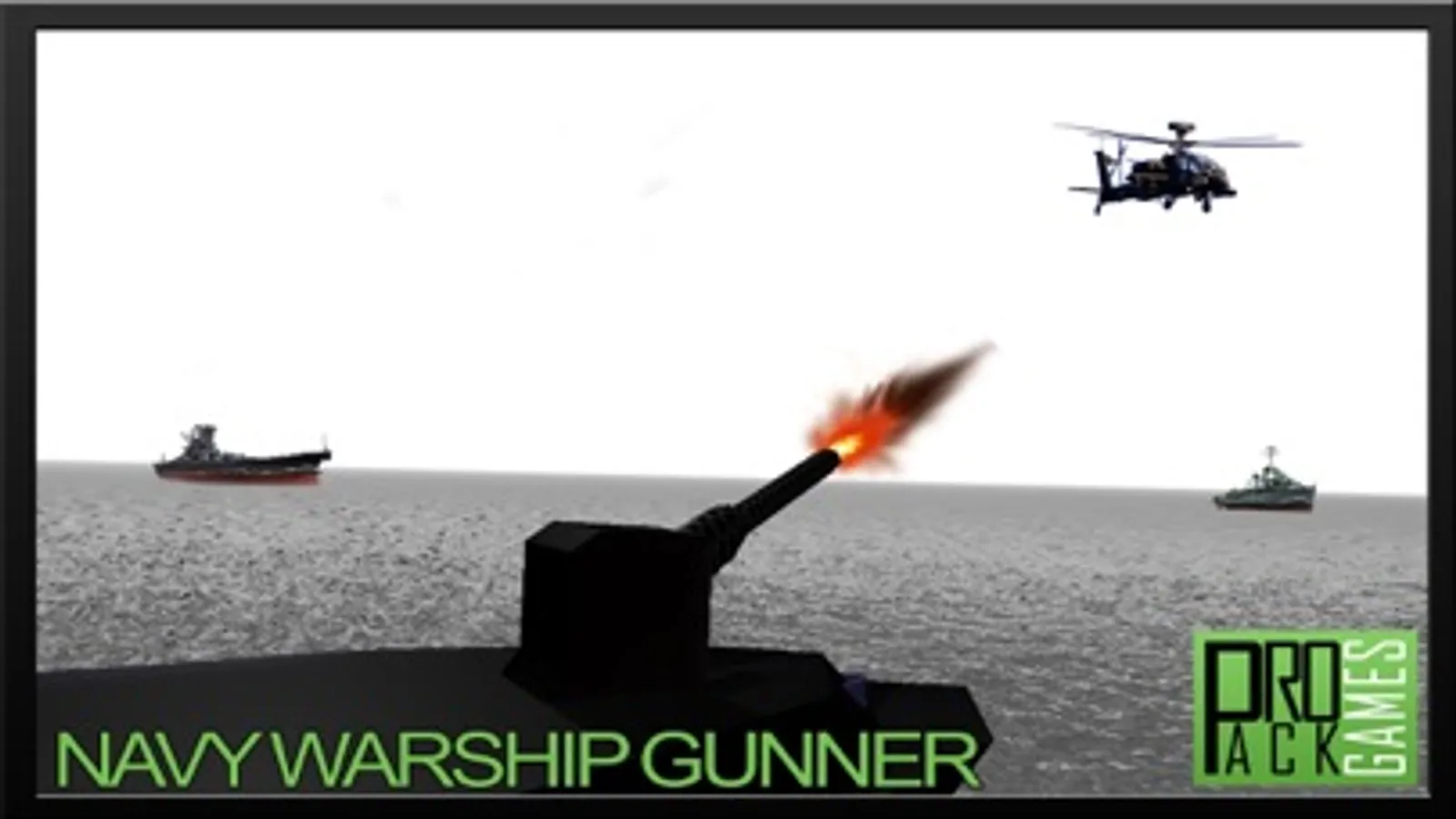 This is a battleship shooting game with several types of military ships, paratrooper soldiers, gunship helicopters, war jets and battle copters