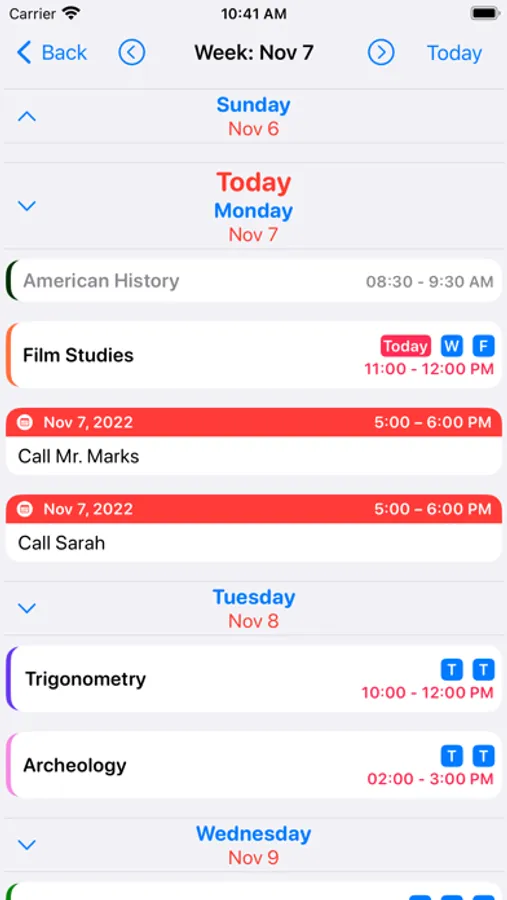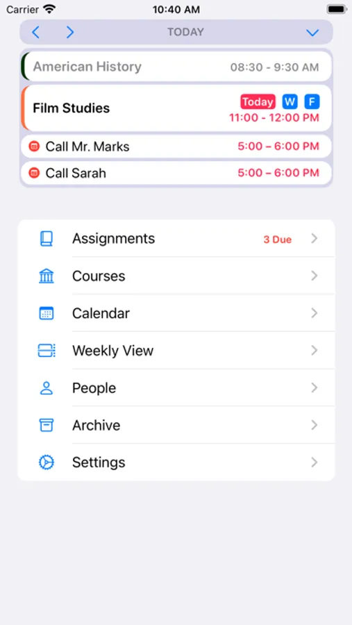 Assignments Calendar, Week, and Today views can show your iOS Calendar events in-app, and you can pick which Calendars you’d like to have appear.