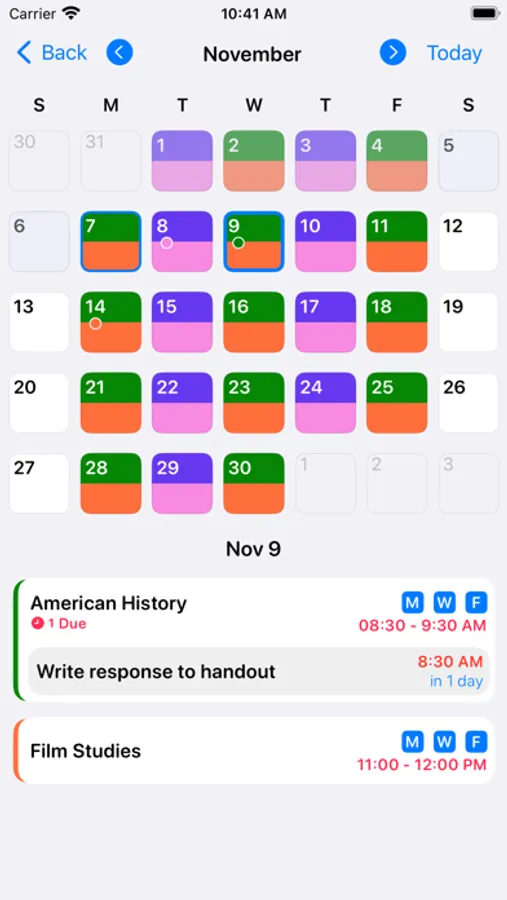 Setup notifications for your assignments and courses, and quickly disable cancelled classes or days off so your vacation won’t be interrupted.