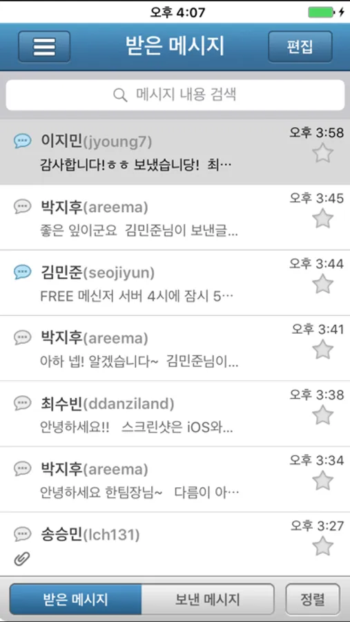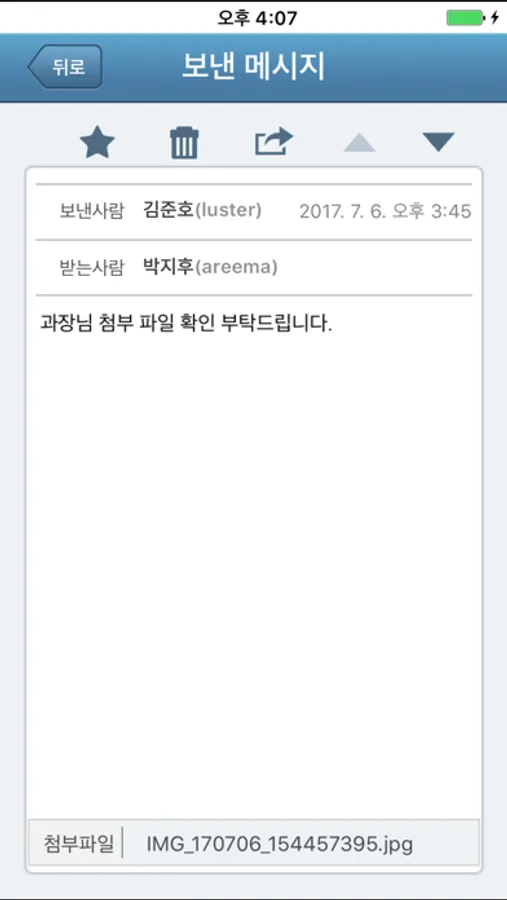 - 메시지 : 메시지 송수신(부재메시지 수신), 수신된 첨부 파일 다운로드