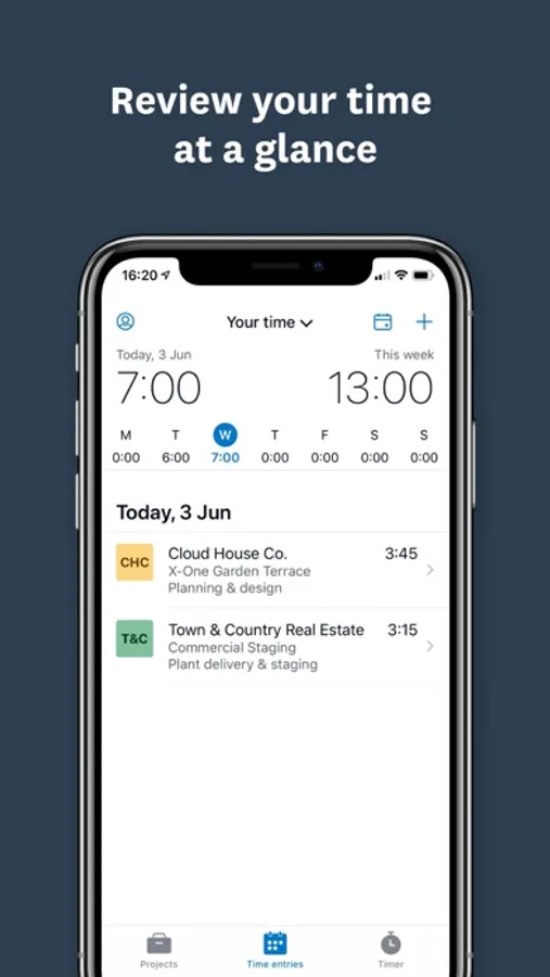 • Track time your way: add start-end times, use stop-start timer or location-based tracking for more accurate time tracking.