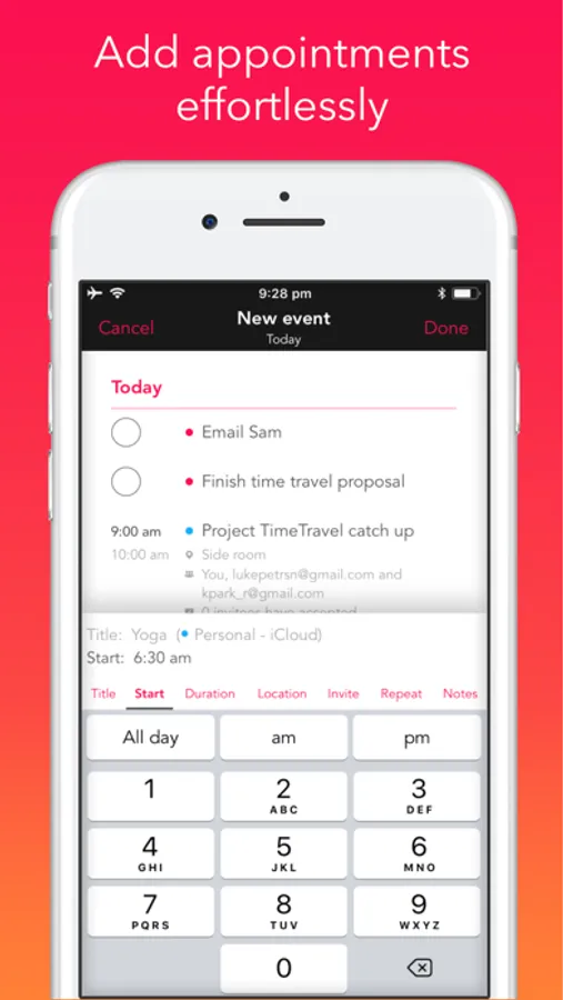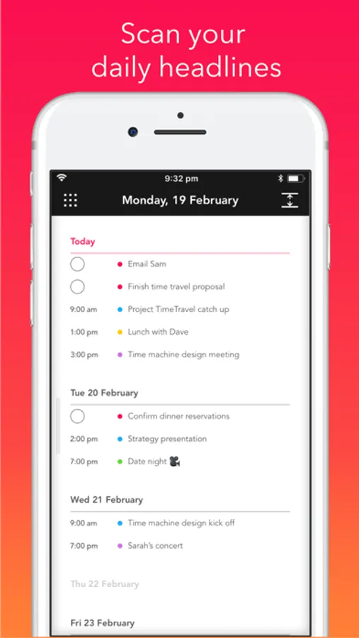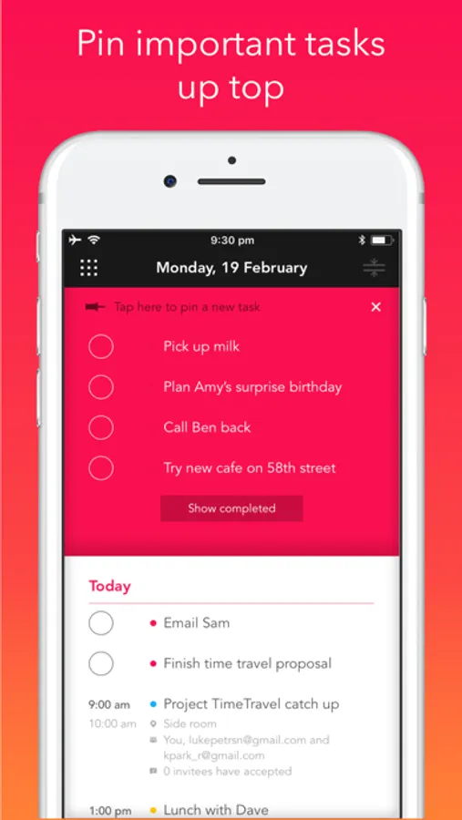 - Automagically sync with all your existing calendars (Google/Apple/Outlook/Yahoo) and Reminders apps