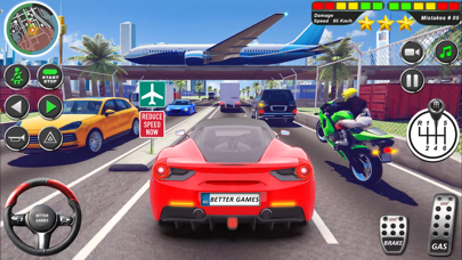 • Smooth Tilt, buttons and steering controls are intelligently designed for this driving school game.