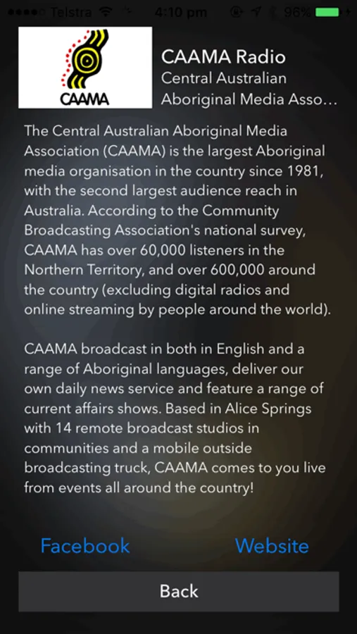 CAAMA produces 99% of its own content, and shares this with other Aboriginal radio stations nation-wide. We broadcast in both in English and a range of Aboriginal languages, deliver our own daily news service and feature a range of current affairs shows. Based in Alice Springs with 14 remote broadcast studios in communities and a mobile outside broadcasting truck, CAAMA comes to you live from events all around the country!