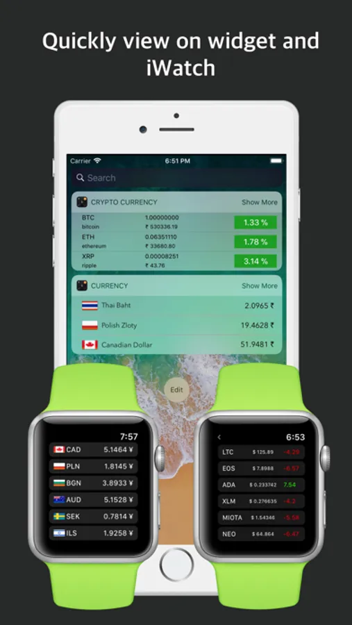 - See the live value of cryptocurrency in iWatch as well as Widget