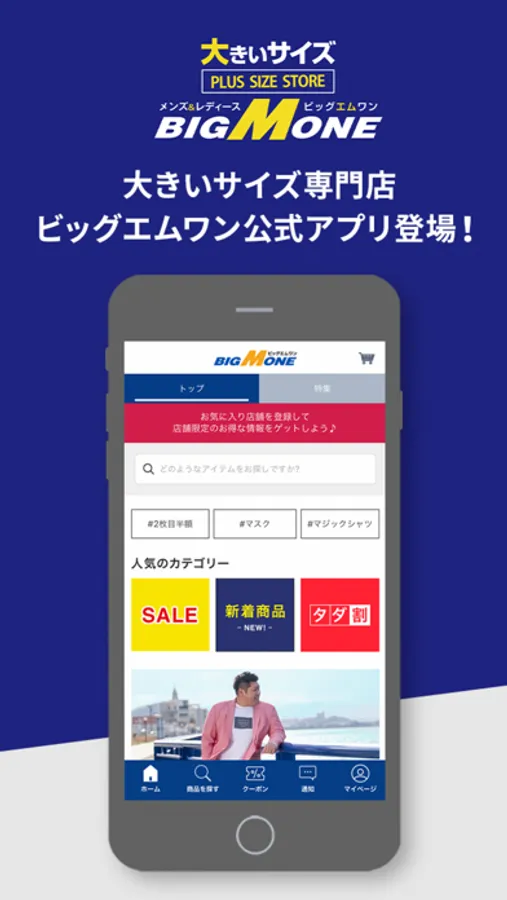 2L・3L・4L・5L・6L・7L・8Lまで大きいサイズの洋服が豊富な専門店、ビッグエムワン(BIG M ONE)から公式アプリが登場です!「大きいサイズの方にも、もっとオシャレを」というコンセプトのもと、トレンドや着心地を意識しながらもリーズナブルな価格で商品提供を心がけています。