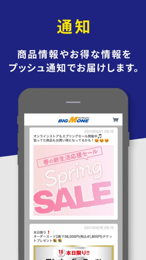 商品情報・イベント情報をプッシュ通知で配信します。