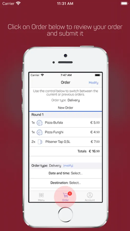 Order now is the app that allows you to make orders for delivery services, for take away but also in case you've taken a seat on-site and don't want to wait for the waiter.