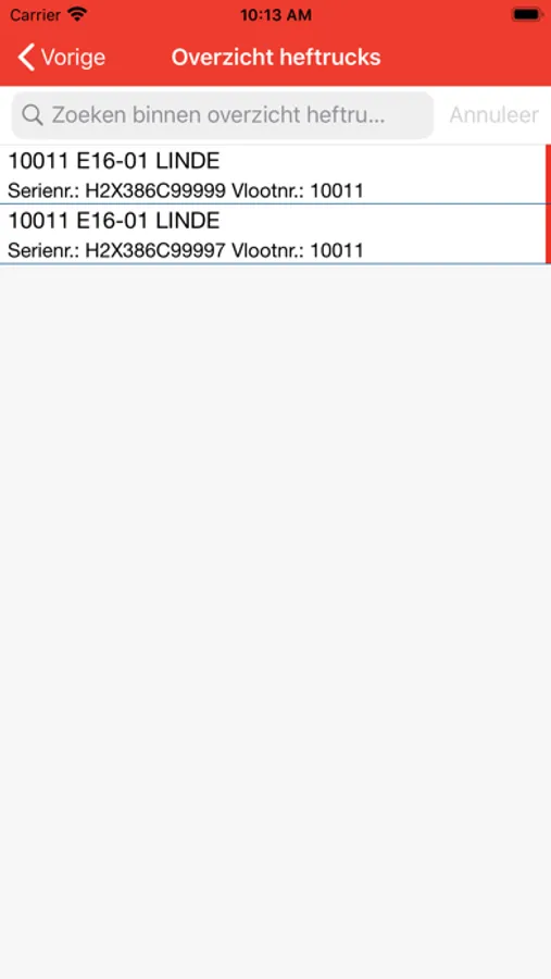 Gebruikers krijgen inzicht in heftrucks welke in onderhoud zijn en lopende onderhoudsopdrachten.