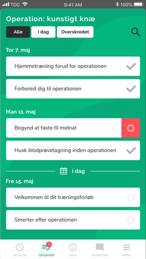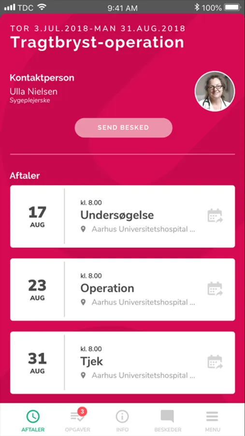 Course overview: in the course overview the citizen can quickly get an overview of appointments at the hospital.