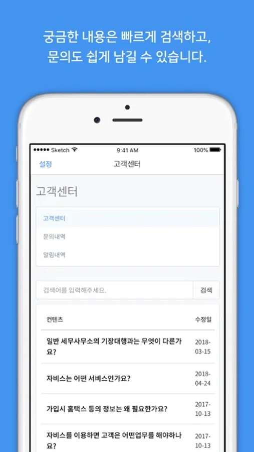 자비스 어플리케이션만 있다면 우리 회사의 상담 이력을 바로 조회해보실 수 있습니다.