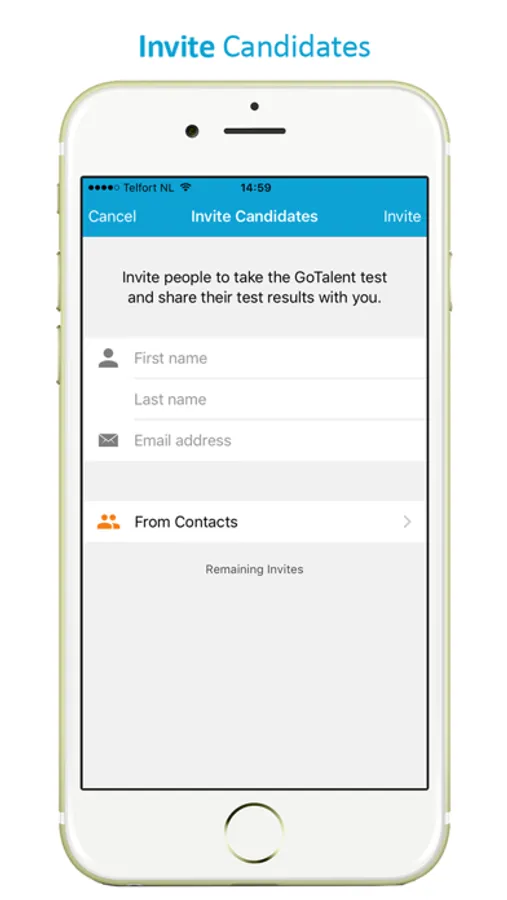 • Automatically invite candidates for testing – As a recruiter or hiring manager, you simply input the email addresses of applicants you want to test and the app does the rest, automatically sending out invites.