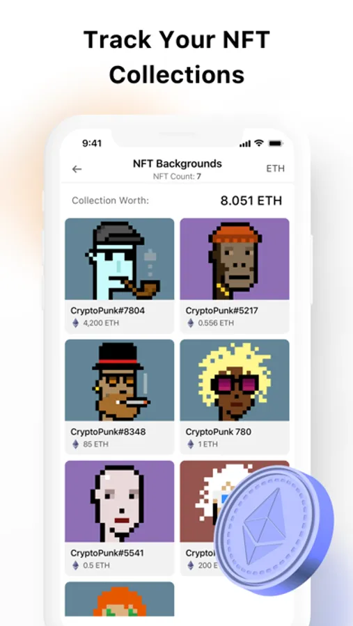 Track all your NFT holdings right where you track your CeFi & DeFi investments. Check NFT prices of all top collections in real-time, plus their market cap, volume, # of owners, supply & other data. Stay updated on the latest NFT news & trends.