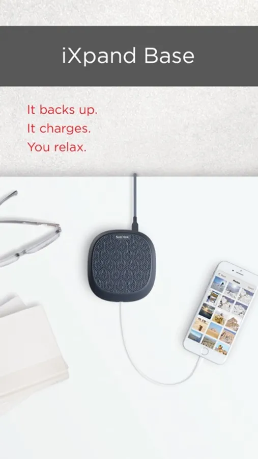 Set up your iXpand Base once and every time you plug in your phone it will automatically backup your content while charging your phone.