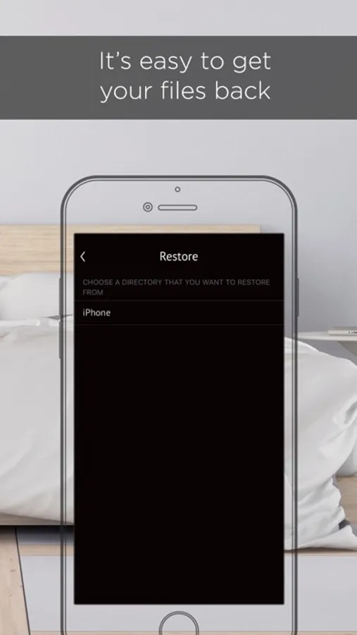 Need to get your files back? It’s easy to restore them, whether you restore to your current phone or a new phone, just plug in and tap restore under settings to get your files back.