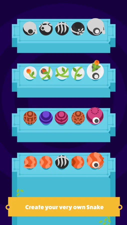 - Unlock skins for your Snake, that you can mix together as you please