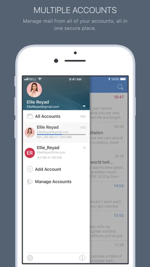 All Accounts in One – Manage emails from Gmail, Google Apps, Outlook, Office 360, Yahoo! Mail, AOL, iCloud or any other IMAP server.