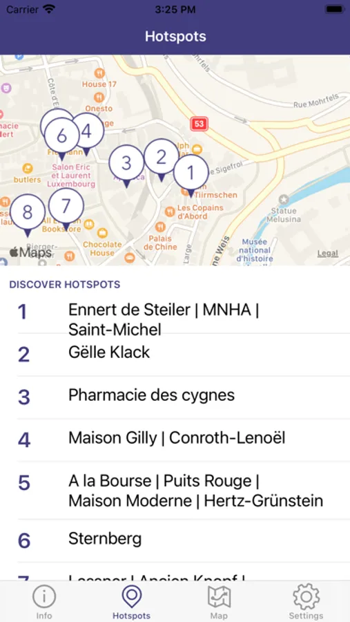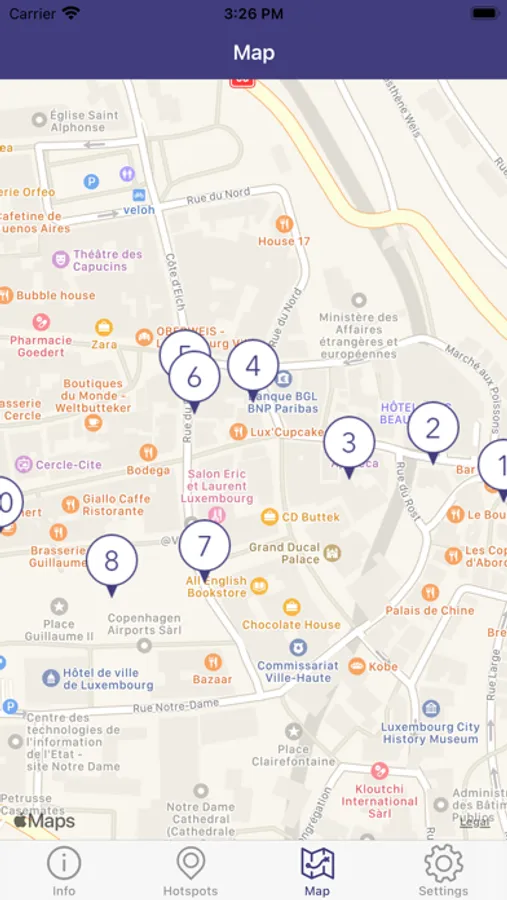 - Display on a map all the places in which the user can access virtual contents using the application.