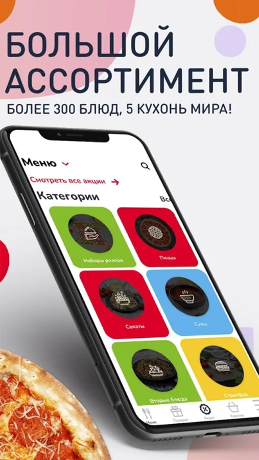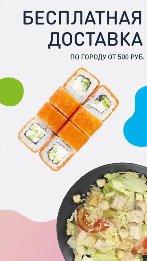 Доверьте нам доставку роллов, пиццы, горячих и первых блюд, выпечки, коробочек WOK, напитков со скидками до 70%!