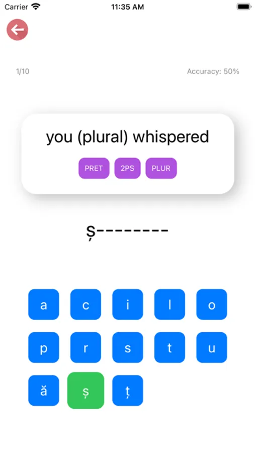 - Gapfill: can you spell out the missing word in the conjugated sentence?