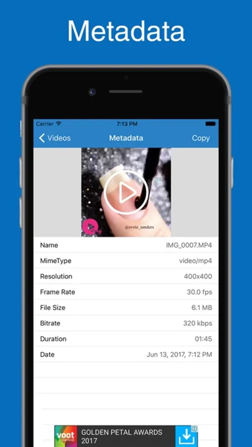 Video info allows you to view your video metadata on your iPhone and iPad devices.