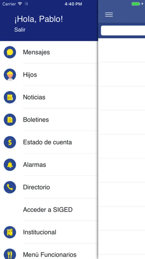 Acceso a menú semanal de cafetería y comedor, campus, intranet, etc.