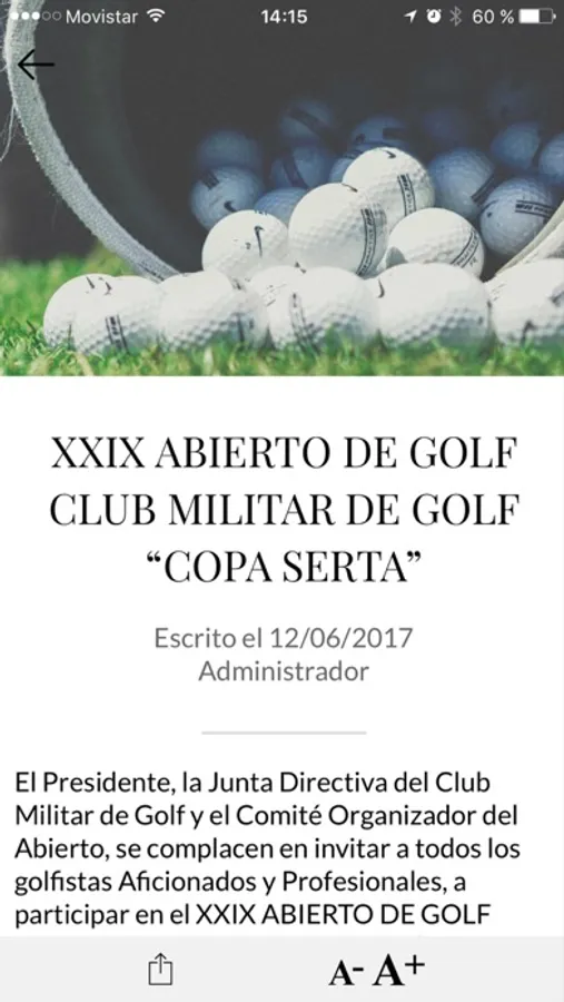 Aplicación móvil que permite que los socios reciban las últimas noticias de golf del Club, alertas de último momento, teléfonos de utilidad, etc.