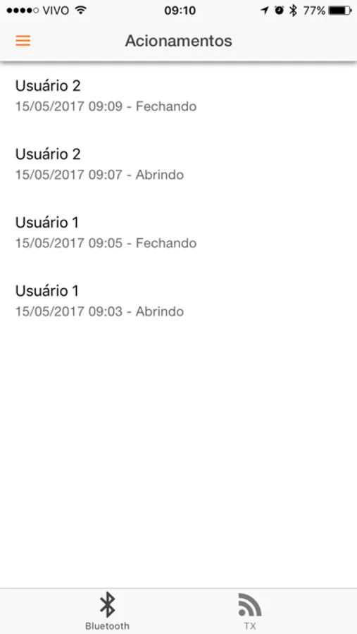 Visualize relatório dos 10 últimos acionamentos na tela;