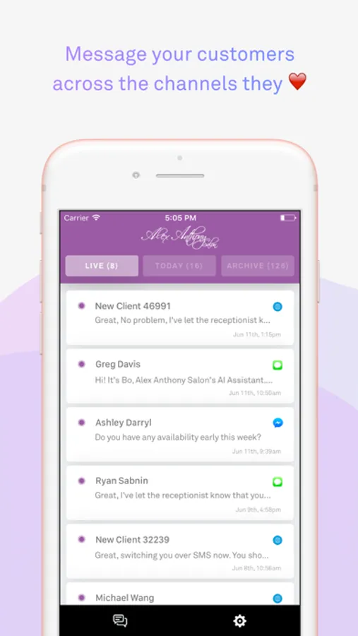 Messenger[ai] converts inbound missed calls into paying customers with automated text backs to any missed call that comes through. Have your clients message you where they want through Webchat, SMS and Facebook, and manage all those threads in one place. Use our AI front desk to assist clients even when you aren’t there so every customer gets taken care of day or night.