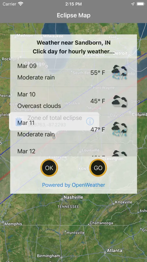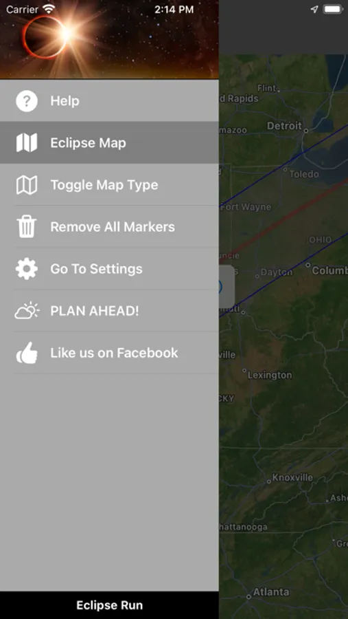 On your journey, Eclipse Run gives you alerts when you enter the zone of totality, and when you cross the line of maximum totality.