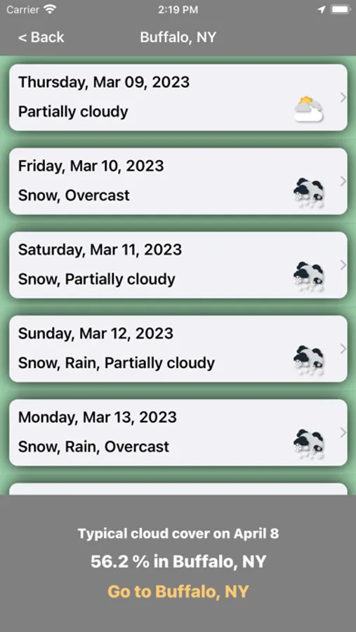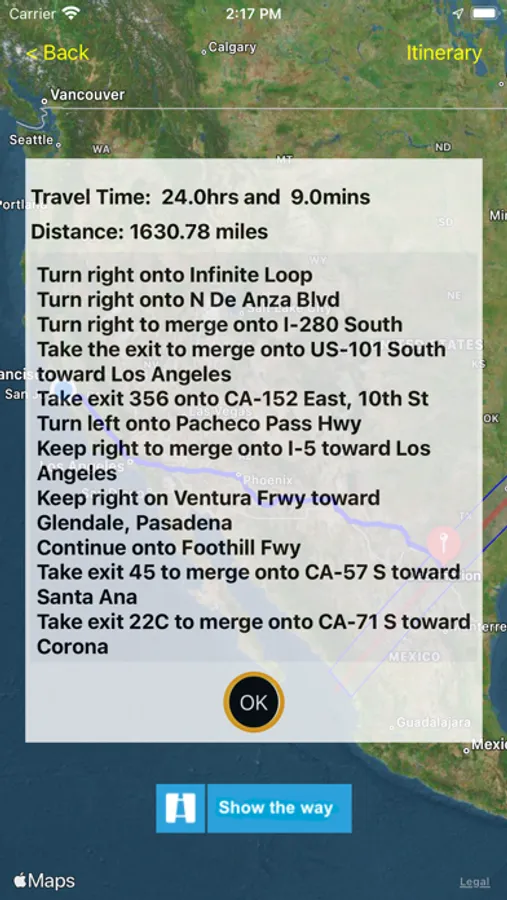Next, by tapping on that dot, you can learn what the weather will be like at your desired location. Plus you’ll get detailed driving instructions via Maps.