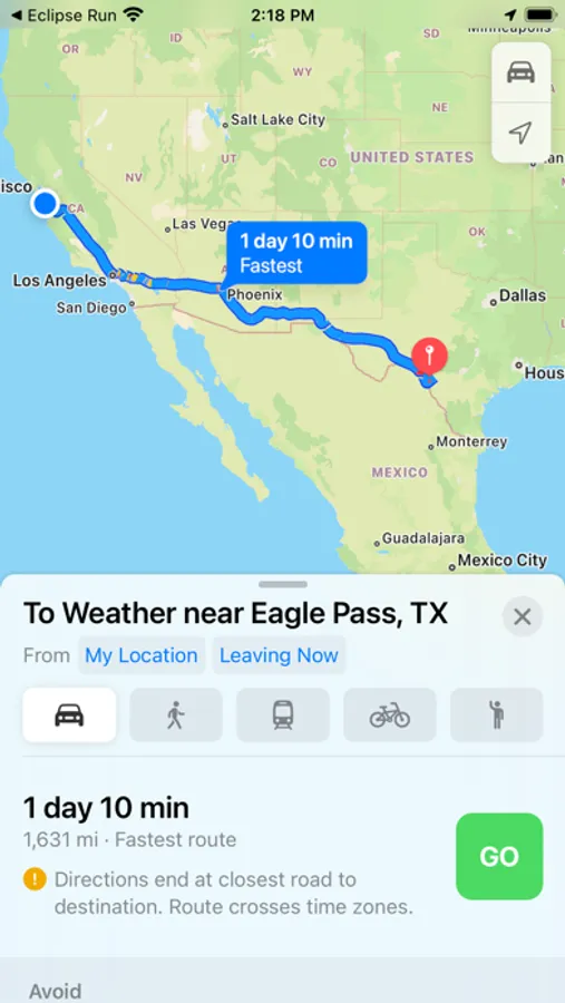 Eclipse Run lets you pick the best spot for you to experience—live and in person!—Available in two languages (English and Spanish) it covers the eclipse of April 8th 2024 (From Newfoundland to Mazatlán, Mexico)