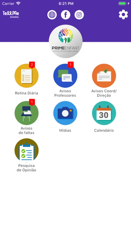 O aplicativo Prime Enfant Tellme School é uma agenda escolar diária eletrônica otimizada em forma de aplicativo onde os alunos/responsáveis poderão ter acesso, através de seus celulares, de forma instantânea, a todas as informações que a escola repassar sobre os alunos. É, portanto, um app móvel utilizado pelos alunos/responsáveis para receber as informações diárias de seu interesse, geradas pelos professores/coordenadores das escolas, permitindo, ainda, o envio de informações por eles para a escola.