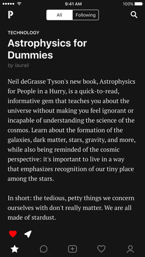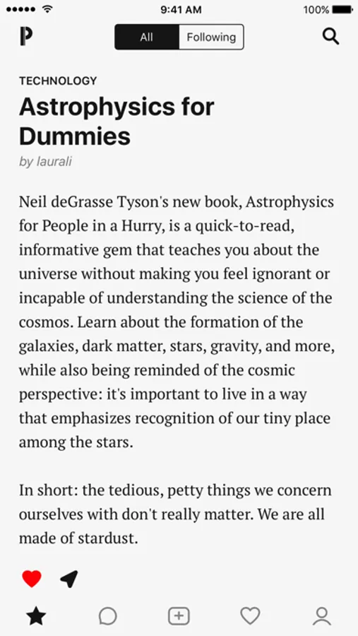 It's a place to read, write, and share short, well-formed thoughts. Say what you want - just keep it 100 words or less. Then share it with anyone, even people who don't use Parse.