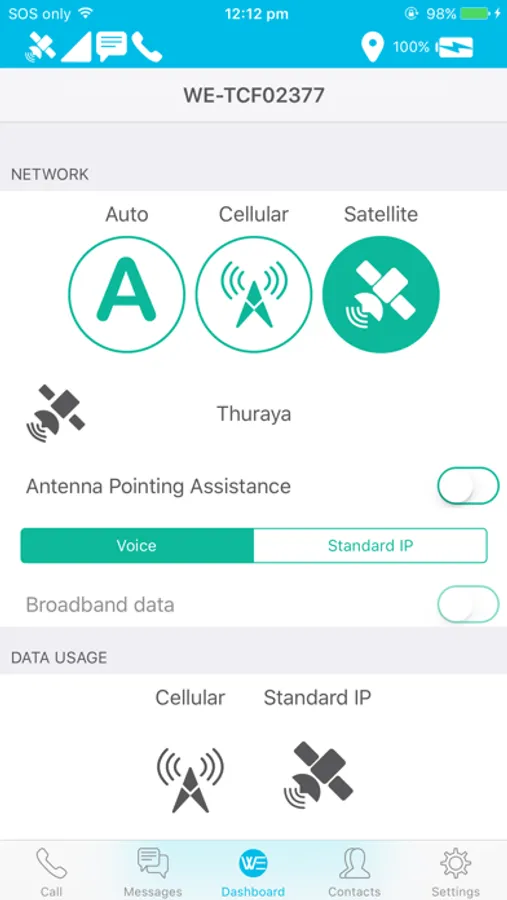 Thuraya WE allows you to automatically switch between Satellite and GSM networks with a click of a button using the Thuraya WE mobile app and web interface. With Thuraya WE, you can transform any area into a Wi-Fi hotspot, and allow up to 10 smart devices to connect and share internet within a range of 30m or more.