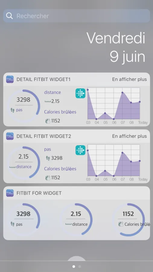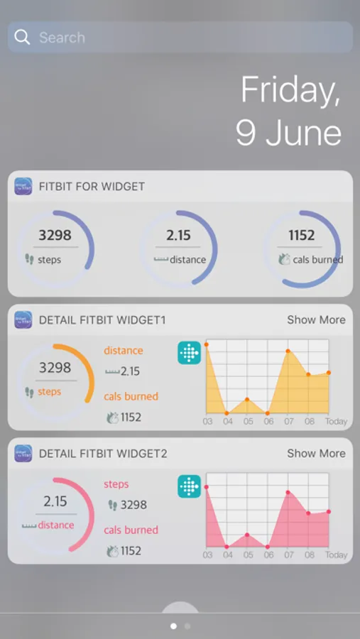 Use the Fitbit Widget on iOS. Based on your goals, the achievement rate is displayed as a graph, and the data for one week is also graphically drawn.